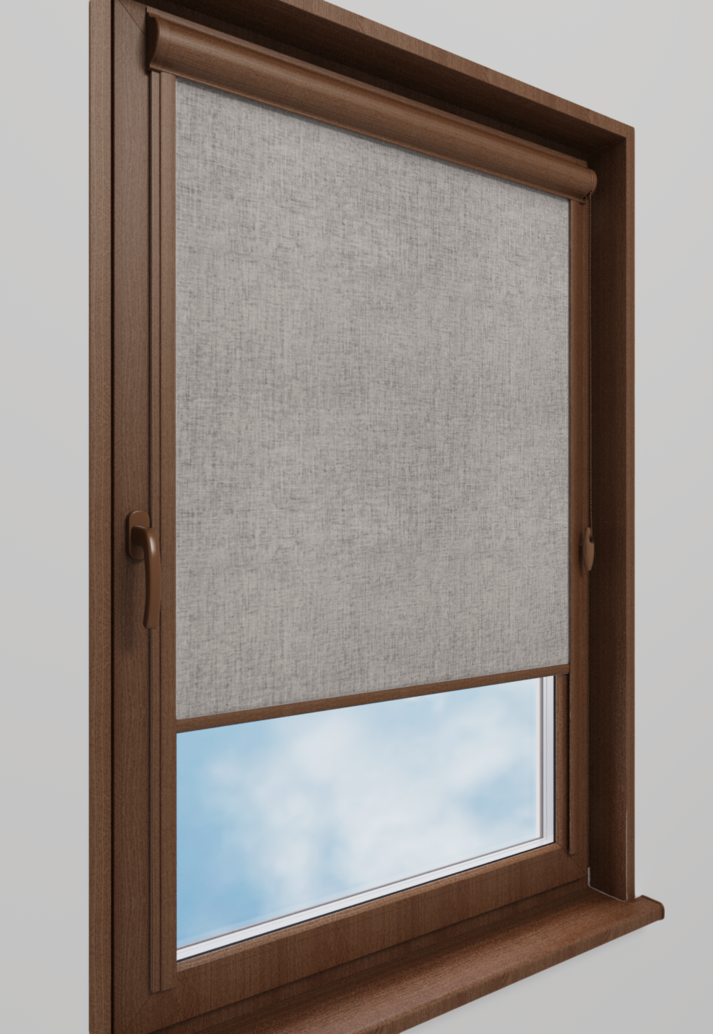 Roleta w kasecie Classic Tkanina Blackout 0014 Jasny szary melanż – kaseta orzech