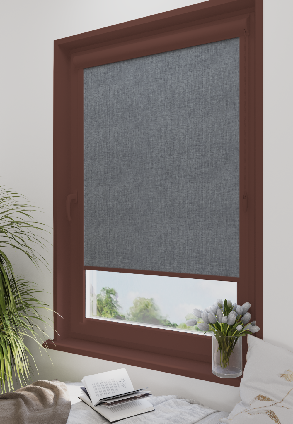 Roleta w kasecie Classic Tkanina Blackout 0016 Szary melanż – kaseta brązowy