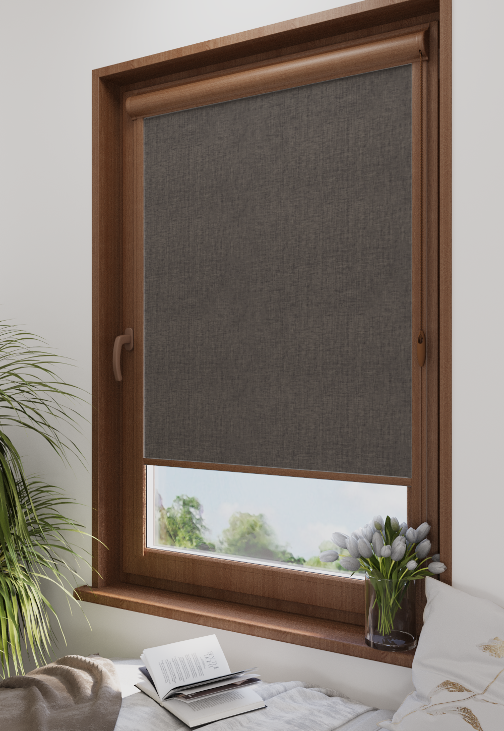 Roleta w kasecie Classic Tkanina Blackout 0017 Brąz melanż – kaseta orzech