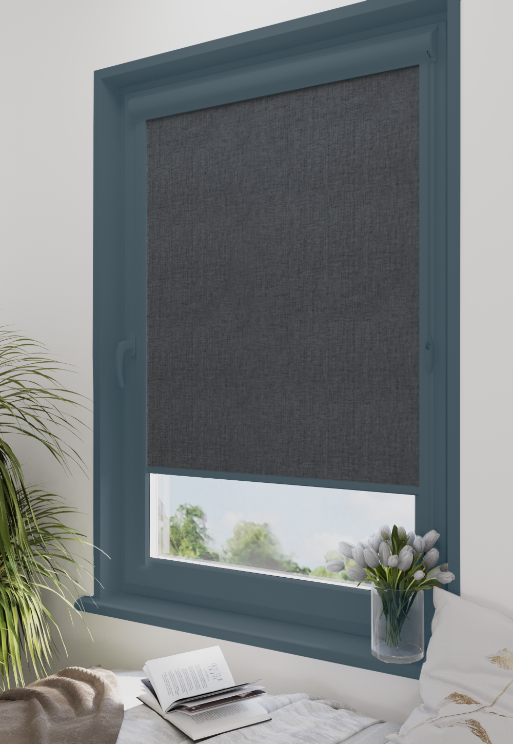Roleta w kasecie Classic Tkanina Blackout 0018 Ciemny szary melanż – kaseta antracyt