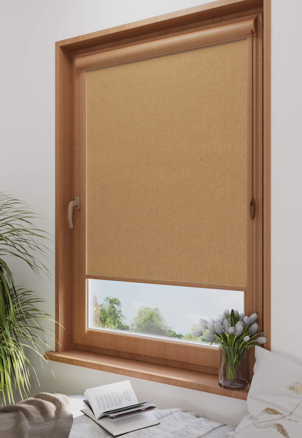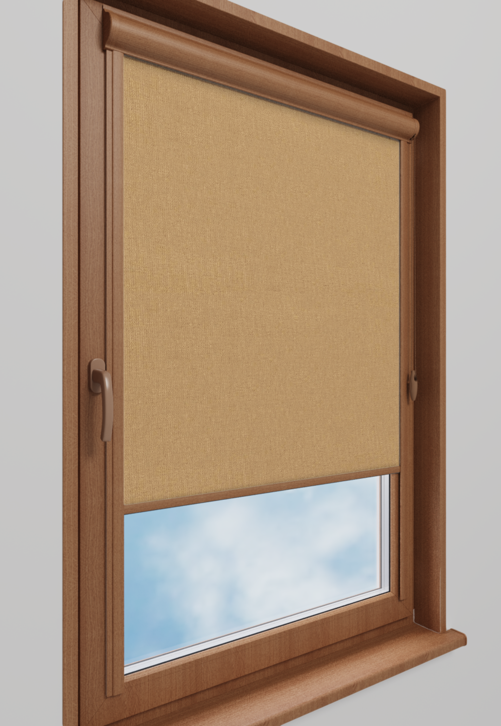 Roleta w kasecie Classic Tkanina Blackout 053 Beż gładki – kaseta złoty dąb