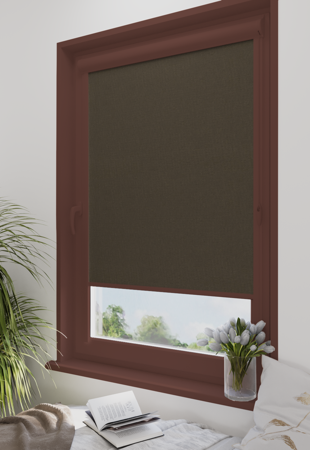 Roleta w kasecie Classic Tkanina Blackout 061 Grafit gładki – kaseta brązowy