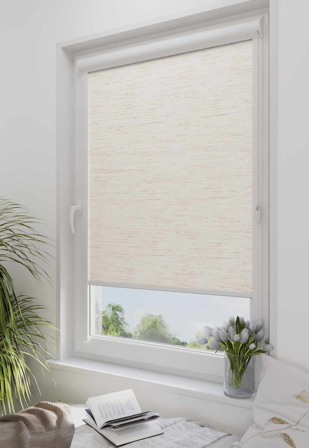 Roleta w kasecie Classic Tkanina Blackout 063 Natural – kaseta biały