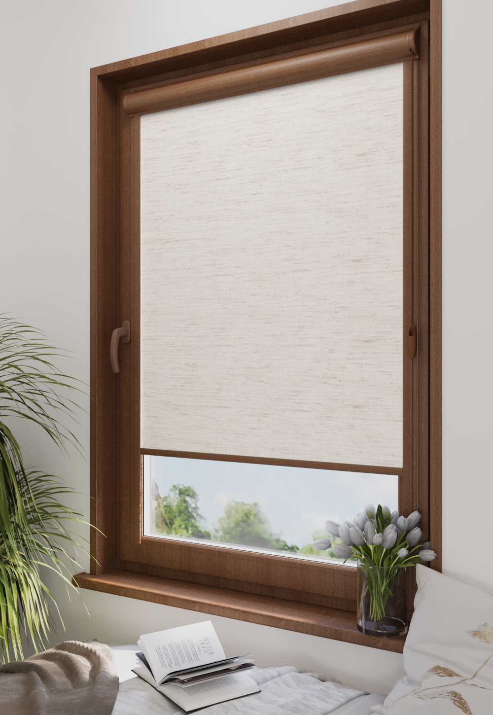Roleta w kasecie Classic Tkanina Blackout 063 Natural – kaseta orzech