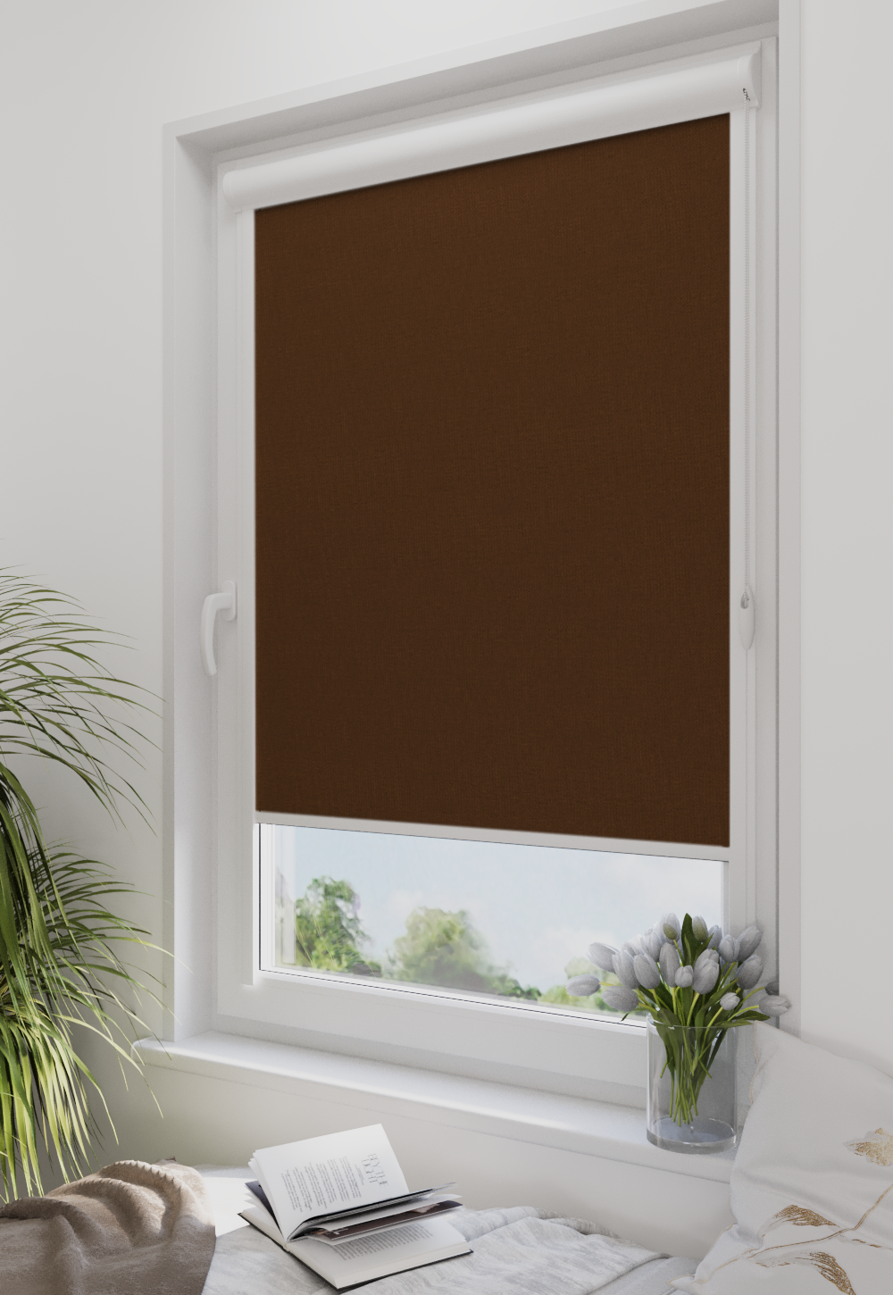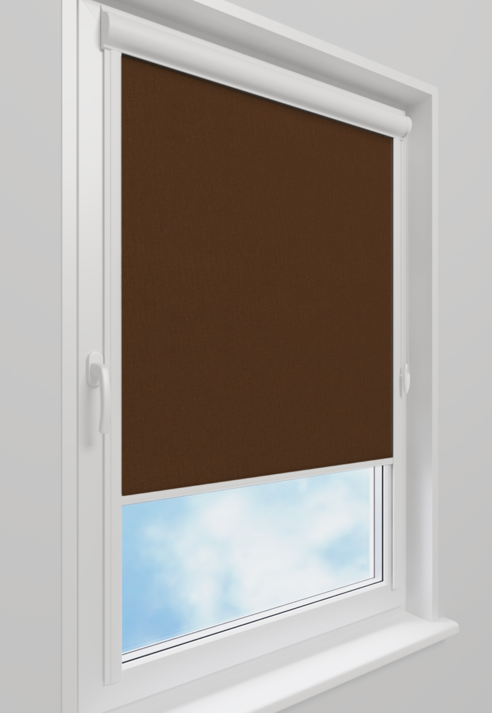 Roleta w kasecie Classic Tkanina Blackout 301 Brąz gładki – kaseta biały