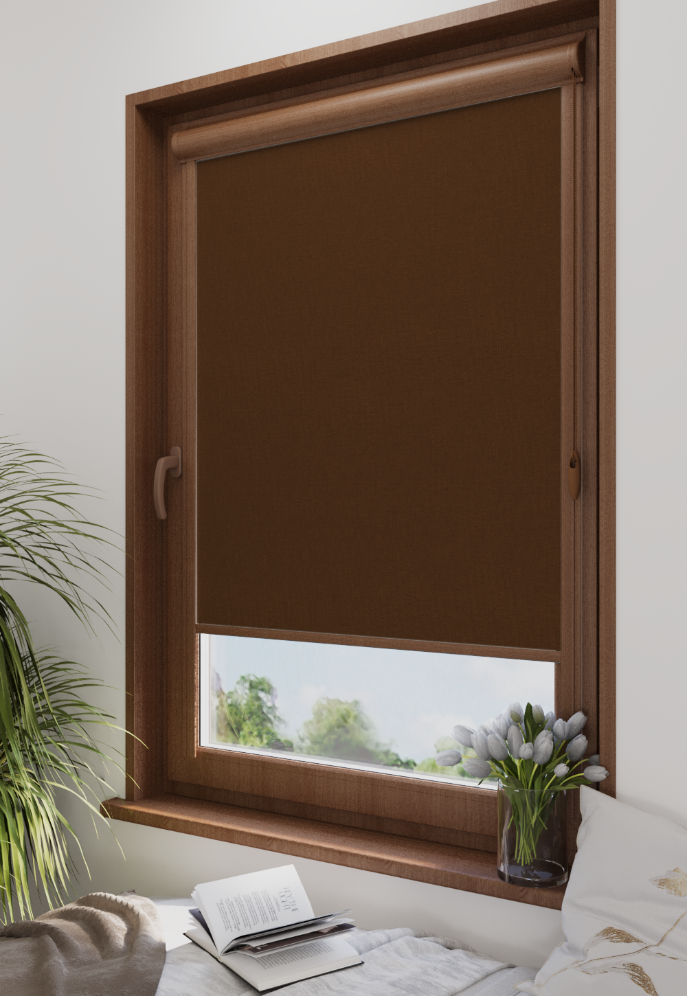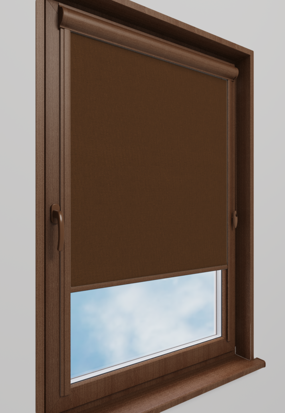 Roleta w kasecie Classic Tkanina Blackout 301 Brąz gładki – kaseta orzech