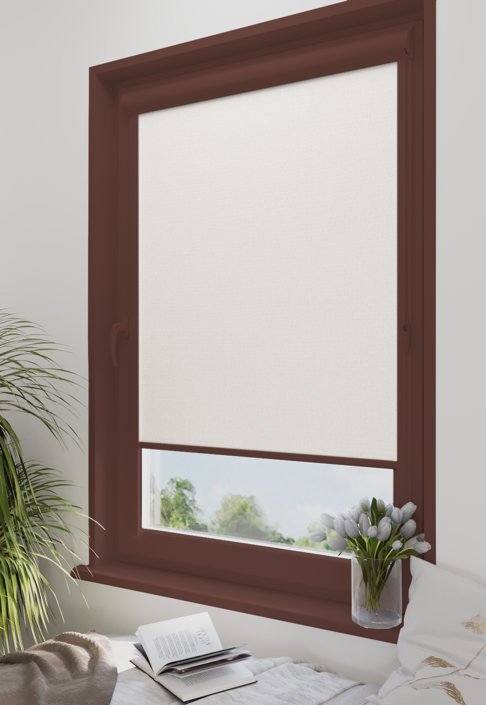 Roleta w kasecie Classic Tkanina Diego 0002 Biel Perłowa – kaseta brązowy