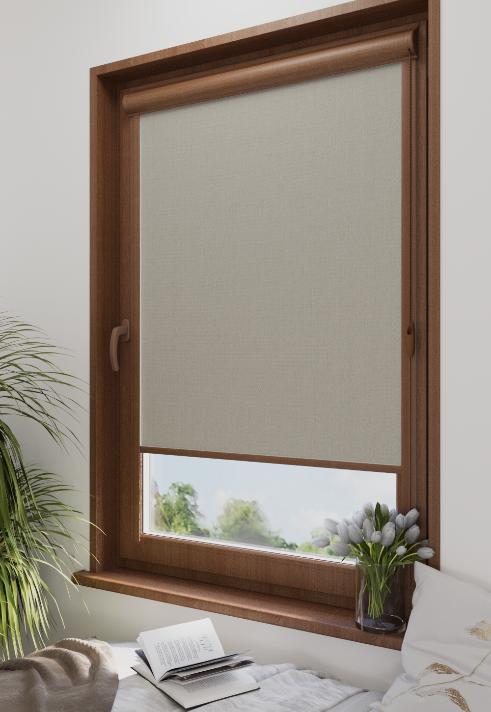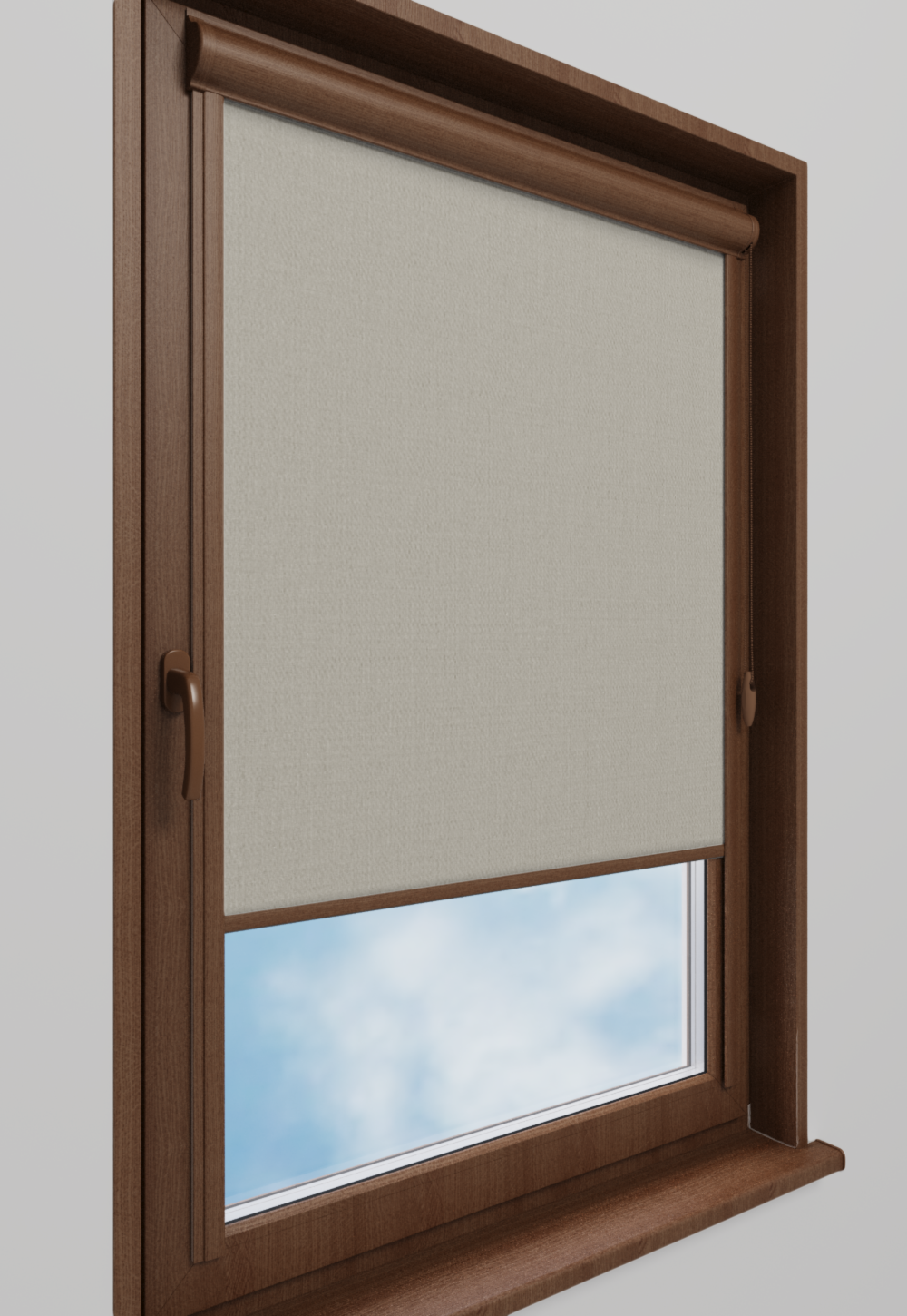 Roleta w kasecie Classic Tkanina Diego 522 Kamienna Szarość – kaseta orzech