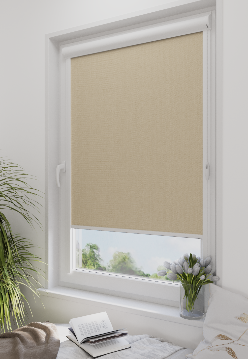 Roleta w kasecie Classic Tkanina Diego 555 Piaskowy Beż – kaseta biały
