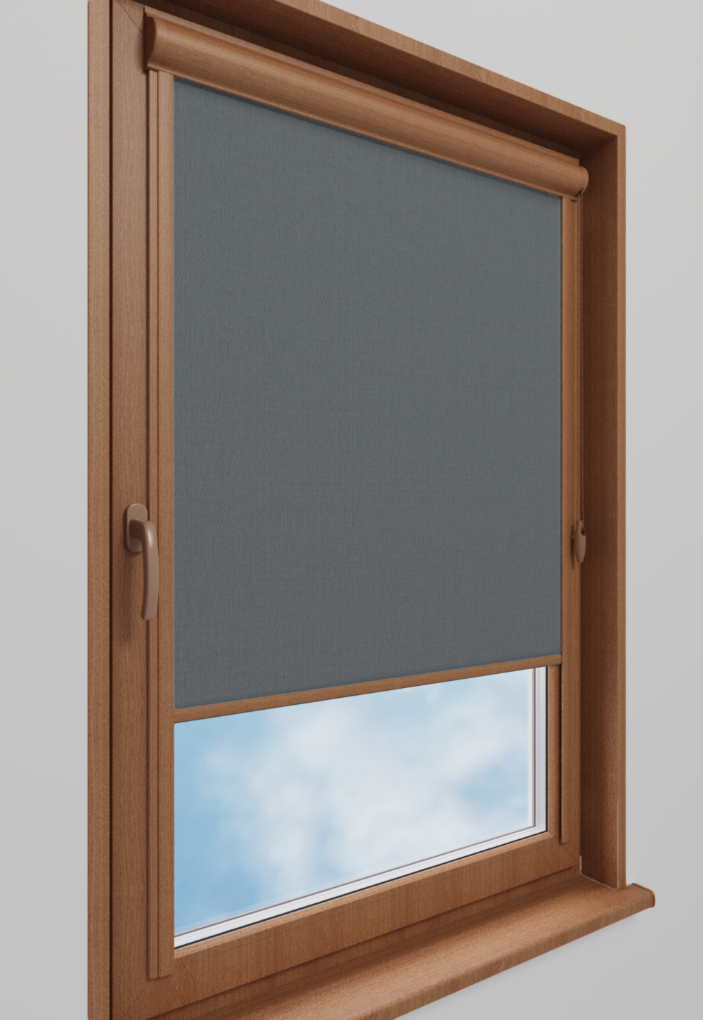 Roleta w kasecie Classic Tkanina Diego 669 Stalowy Szary – kaseta złoty dąb