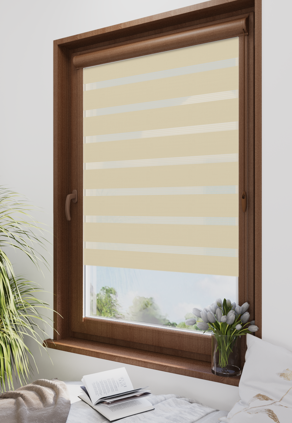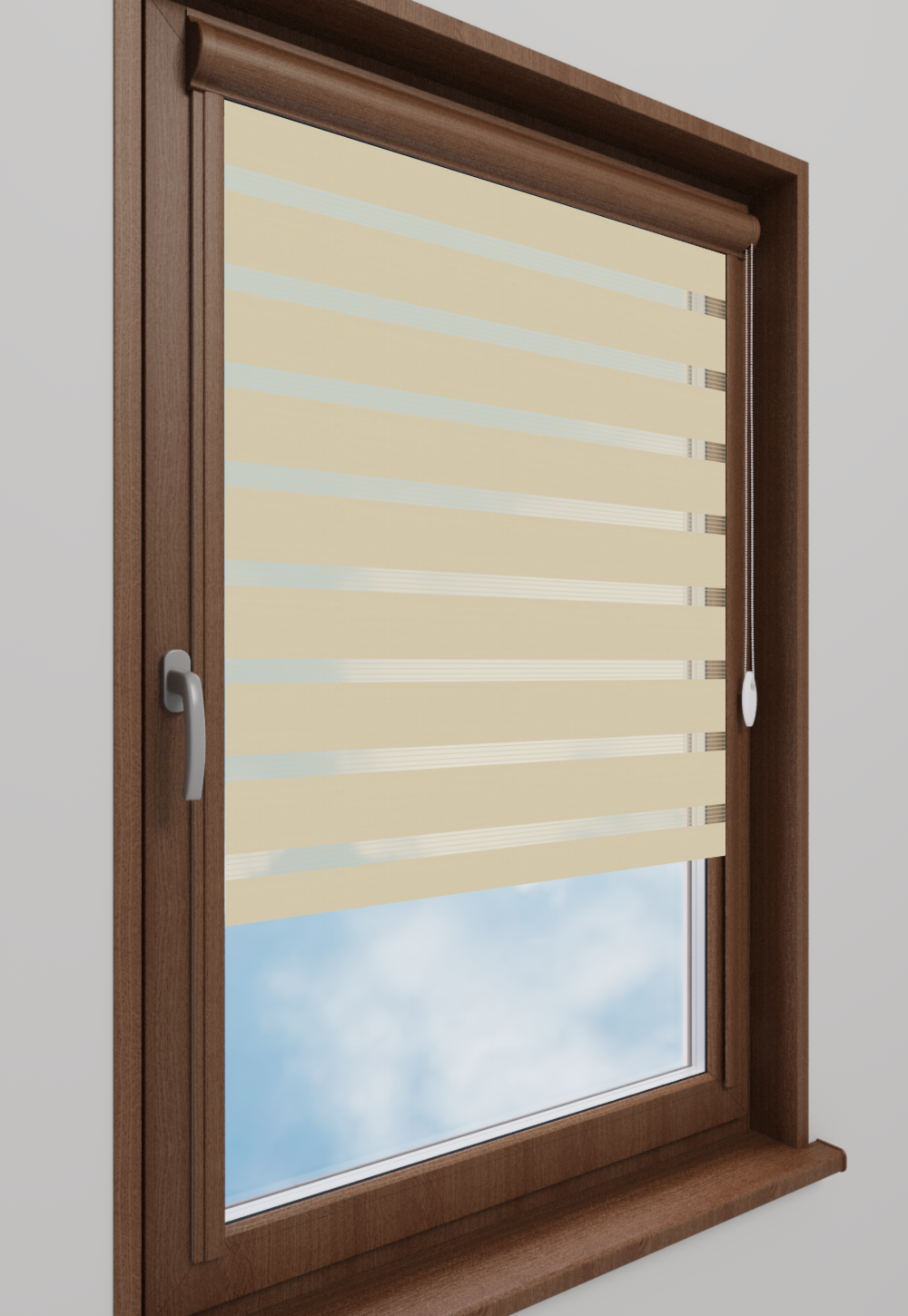 Roleta w kasecie Classic Tkanina Dzień Noc BH-05 Kremowy Beż - kaseta orzech