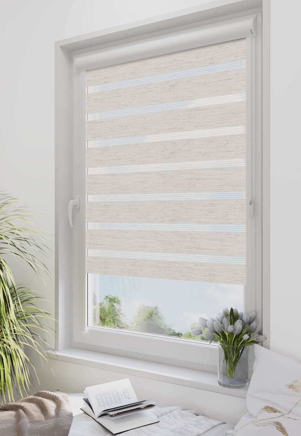 Roleta w kasecie Classic Tkanina Dzień Noc BH-08 Natural - kaseta biała