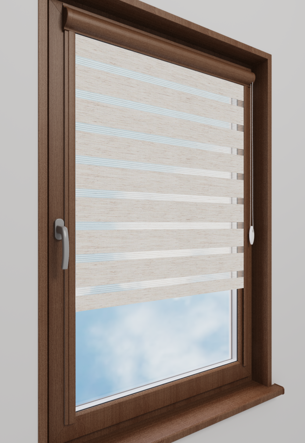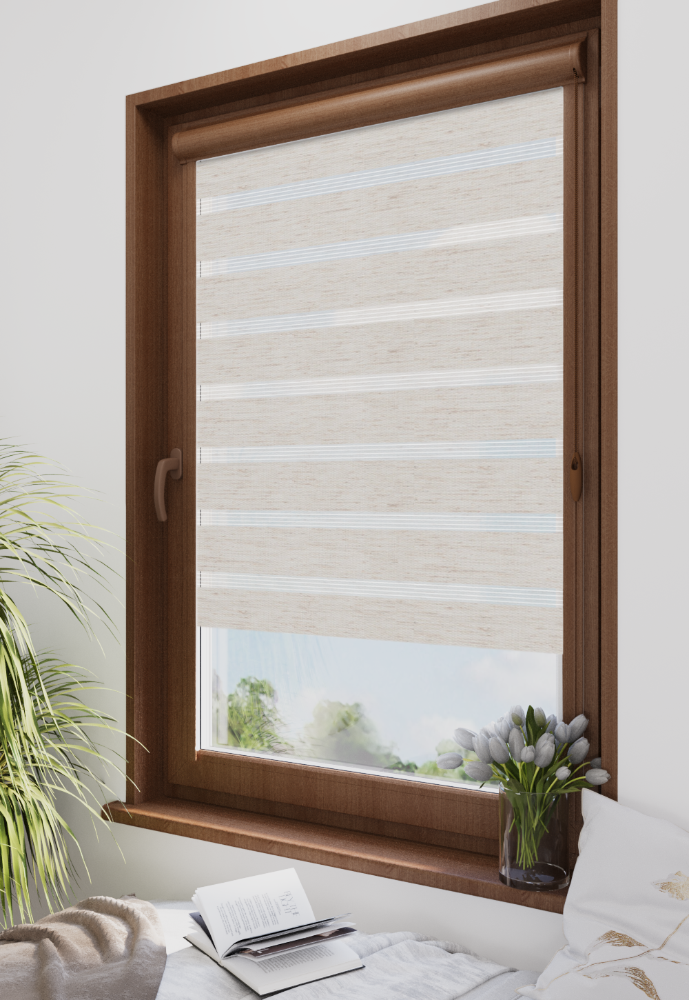 Roleta w kasecie Classic Tkanina Dzień Noc BH-08 Natural - kaseta orzech