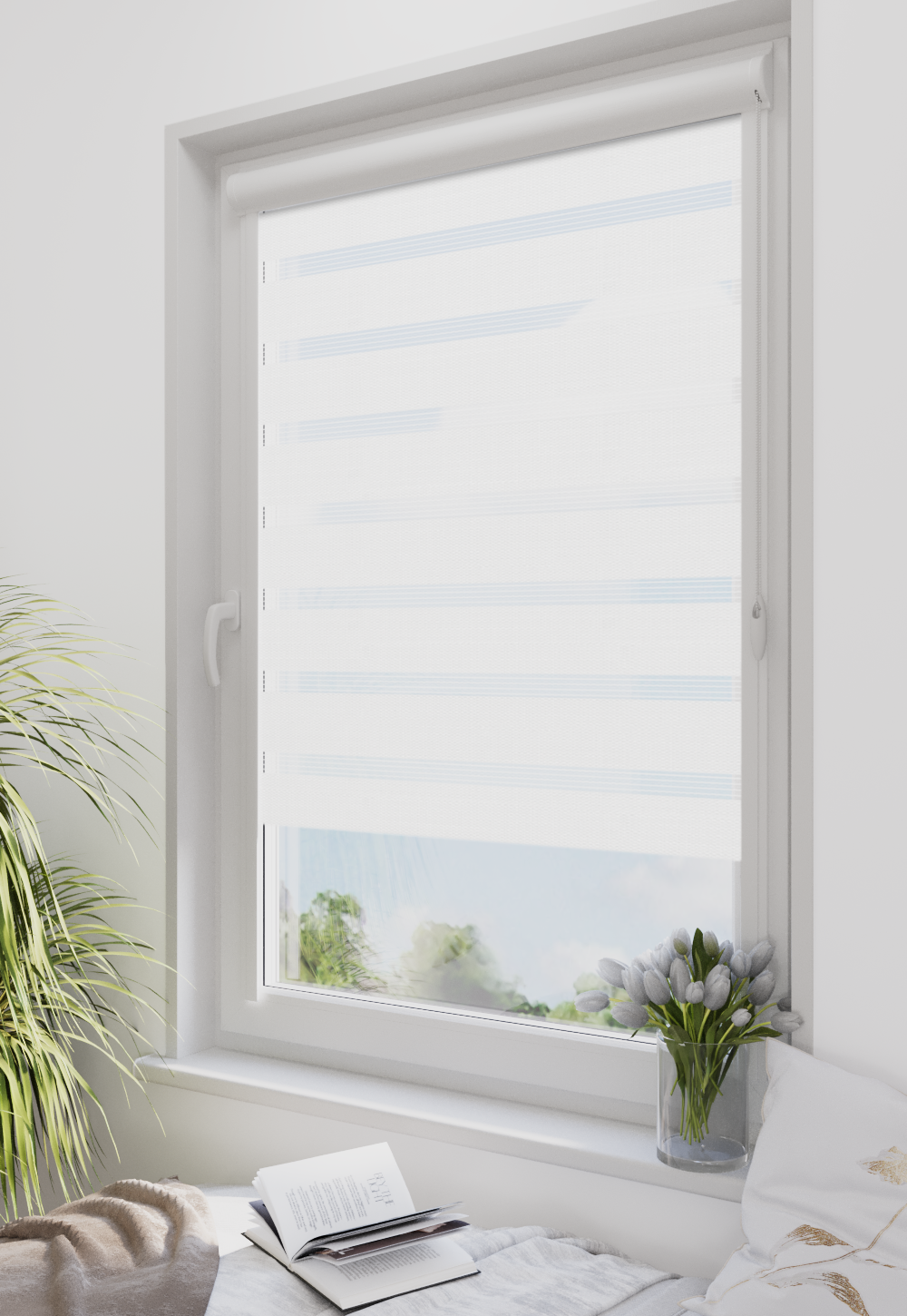 Roleta w kasecie Classic Tkanina Dzień Noc BH-3800 Biały - kaseta biała