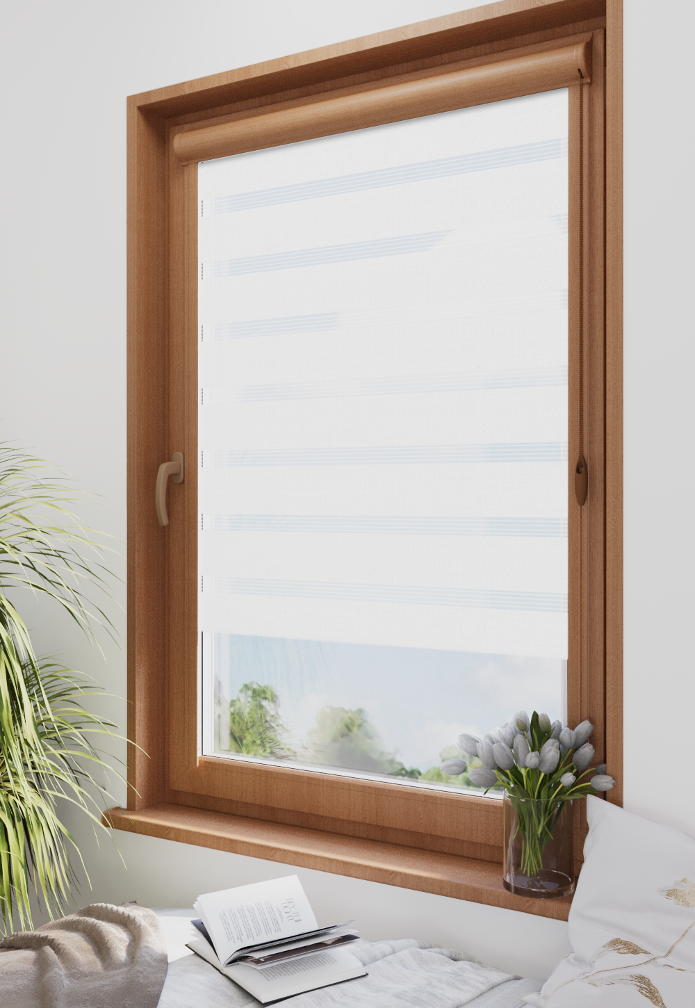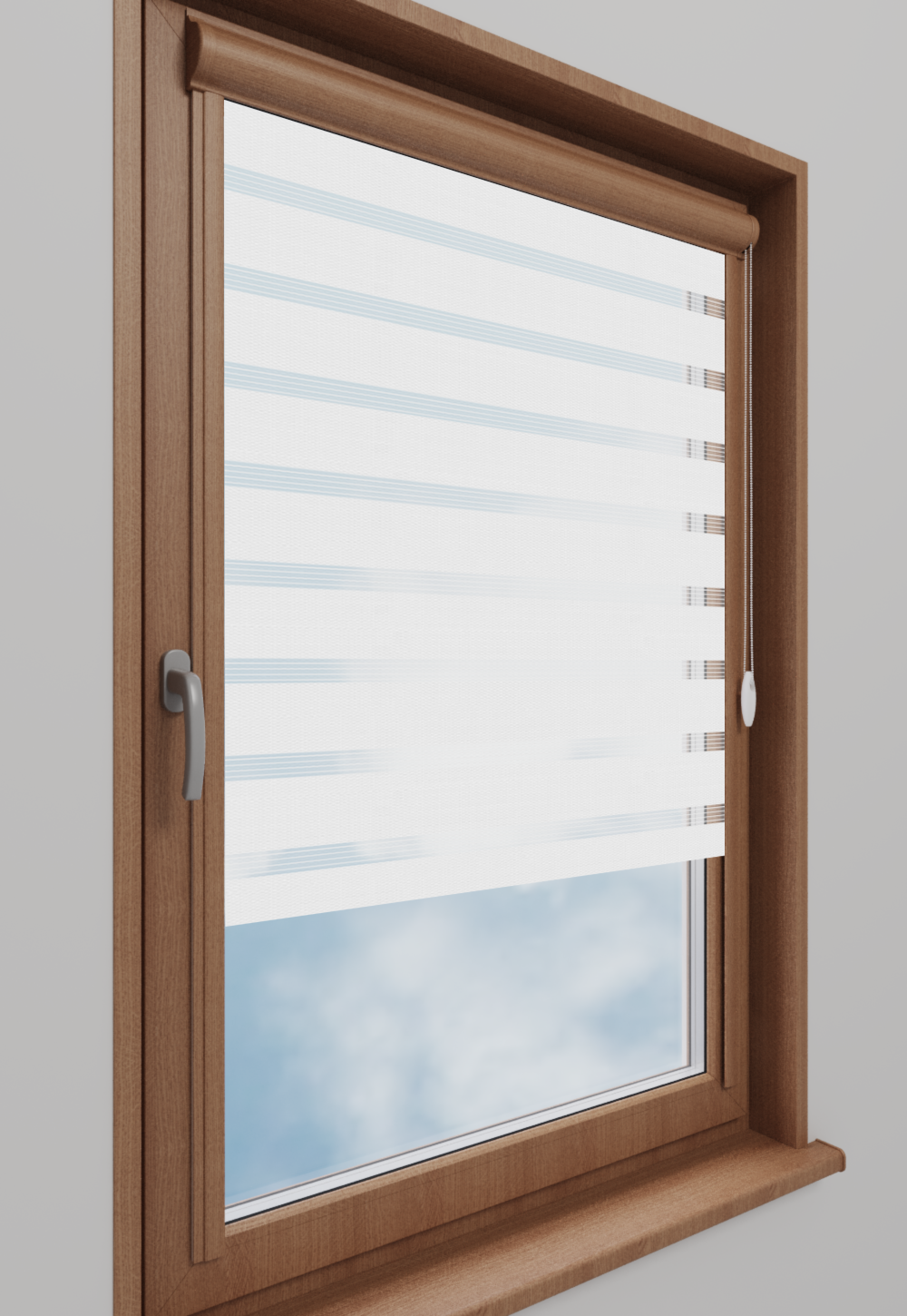 Roleta w kasecie Classic Tkanina Dzień Noc BH-3800 Biały - kaseta złoty dąb