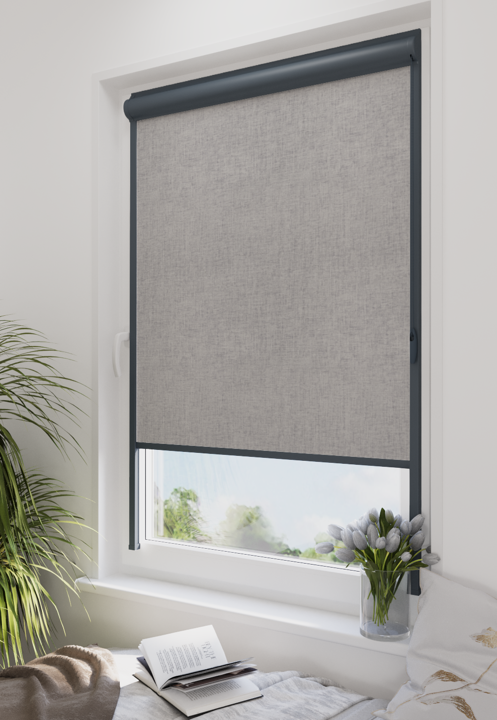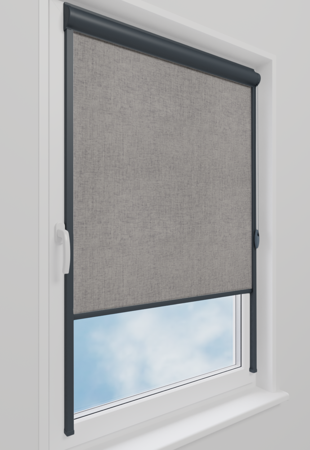 Roleta w kasecie LORD Tkanina Blackout 0014 Jasny szary melanż – kaseta antracyt