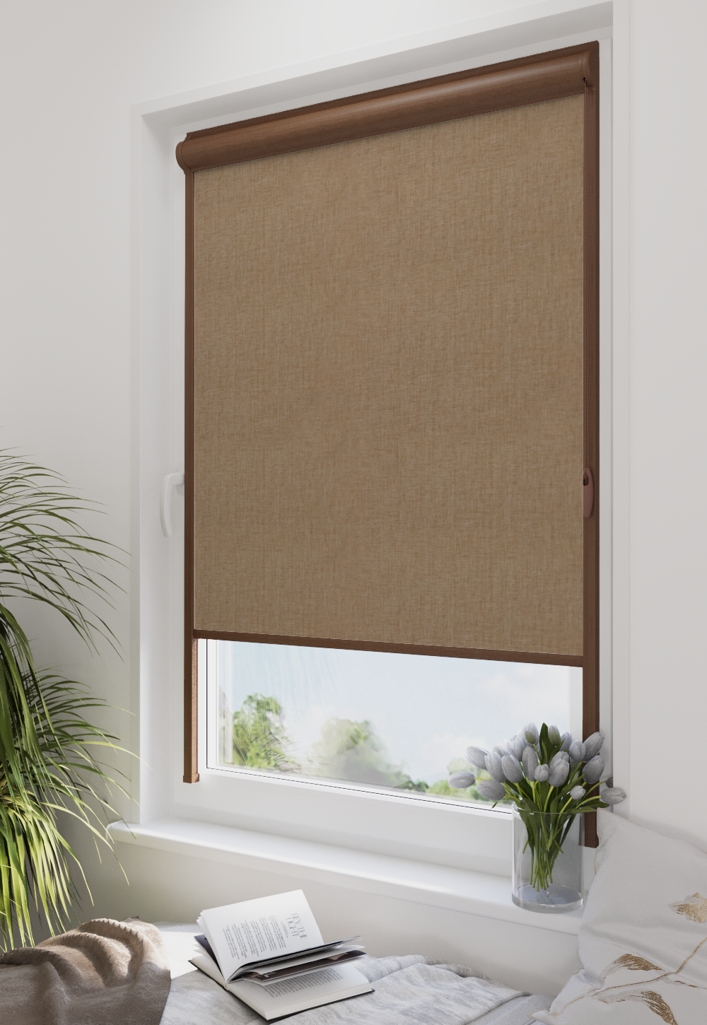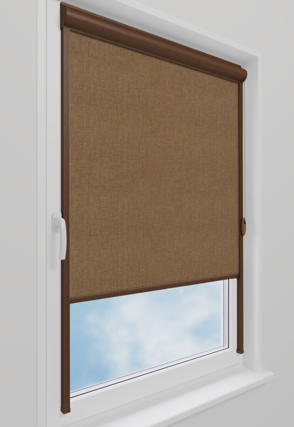 Roleta w kasecie LORD Tkanina Blackout 0015 Jasny brąz melanż – kaseta orzech