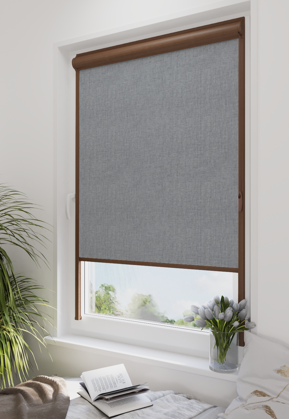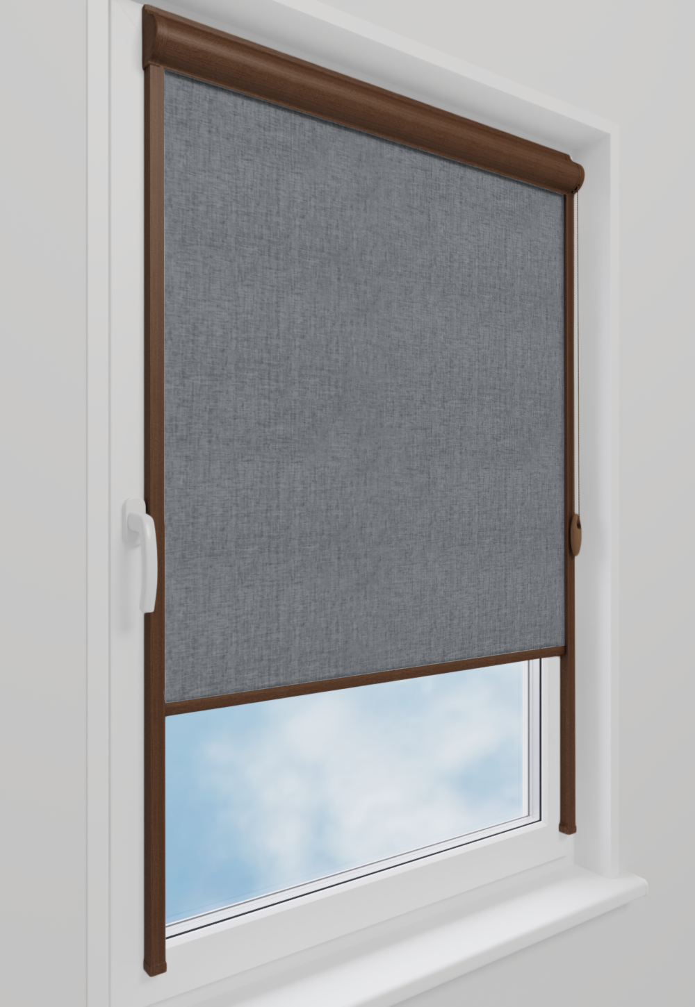 Roleta w kasecie LORD Tkanina Blackout 0016 Szary melanż – kaseta orzech