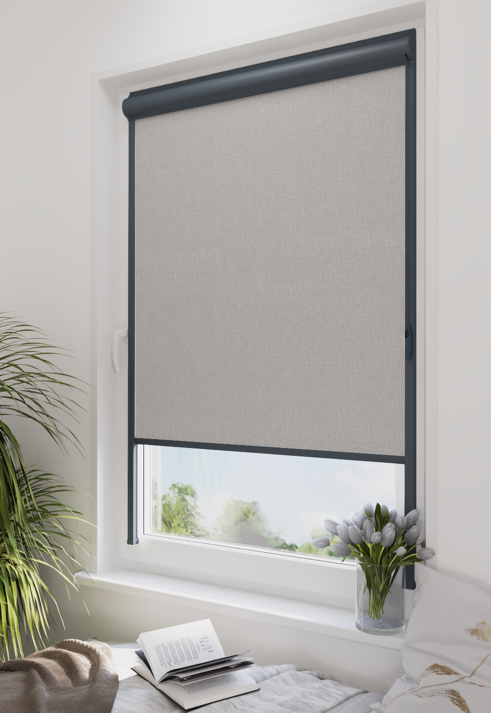 Roleta w kasecie LORD Tkanina Blackout 054 Szary gładki – kaseta antracyt