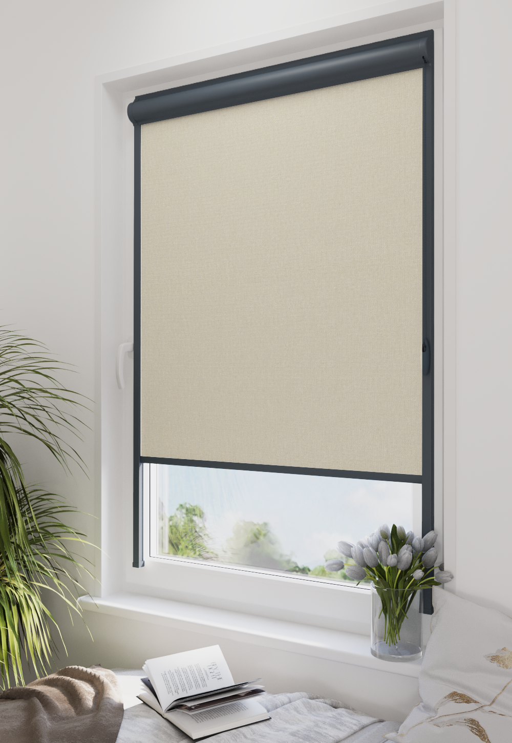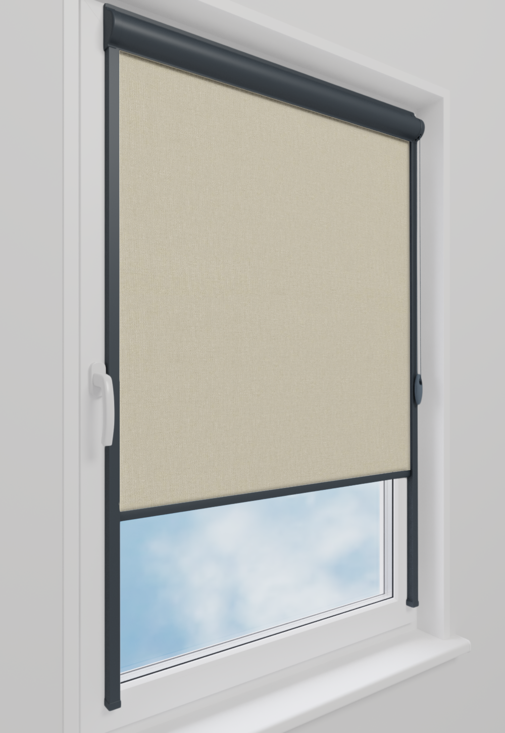 Roleta w kasecie LORD Tkanina Blackout 056 Krem gładki – kaseta antracyt