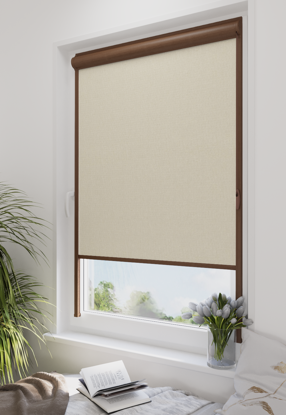 Roleta w kasecie LORD Tkanina Blackout 056 Krem gładki – kaseta orzech