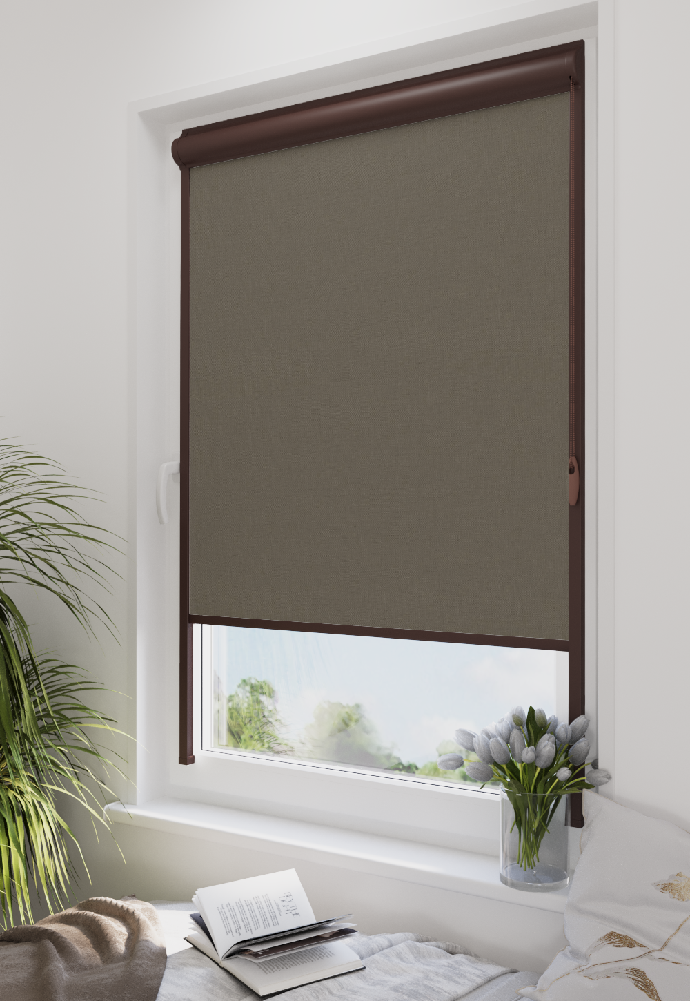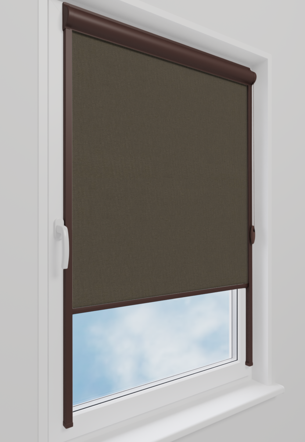 Roleta w kasecie LORD Tkanina Blackout 061 Grafit gładki – kaseta brązowy