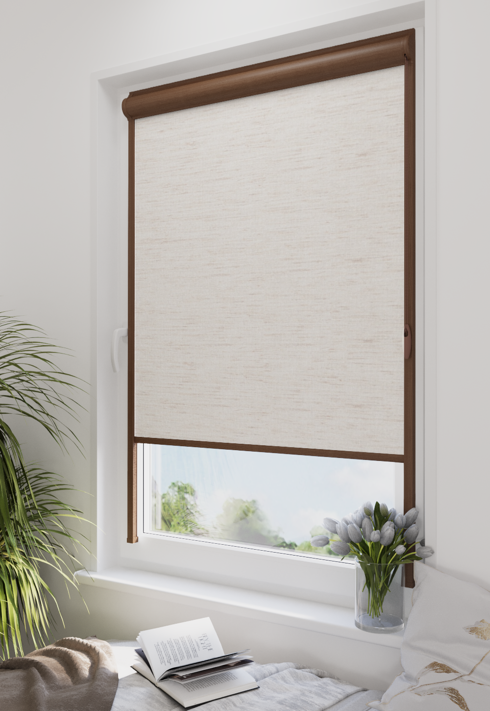 Roleta w kasecie LORD Tkanina Blackout 063 Natural – kaseta orzech