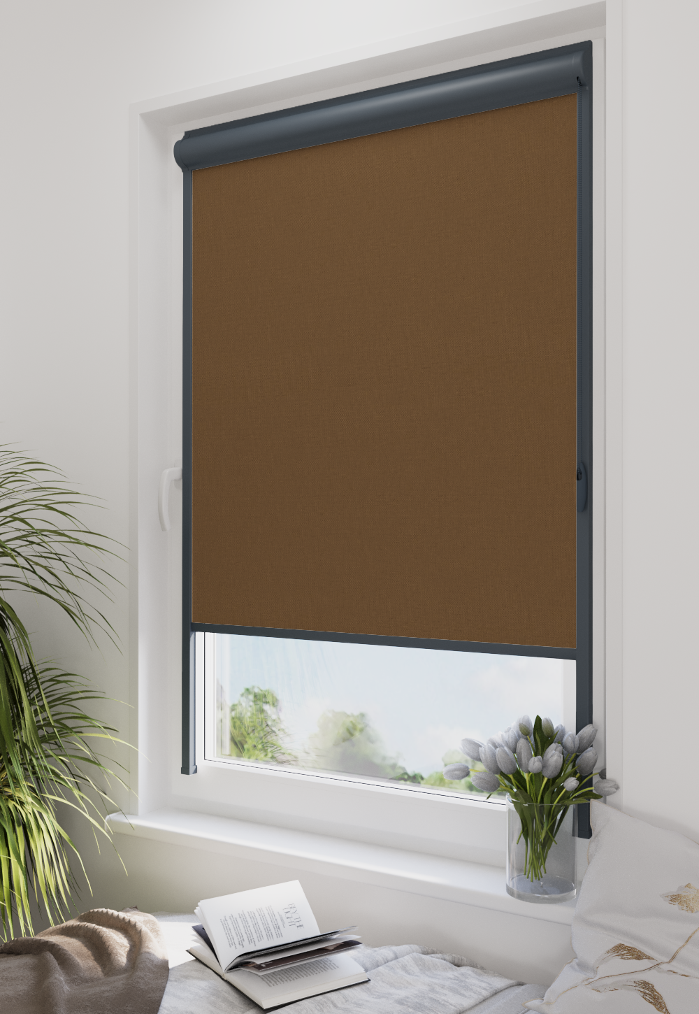 Roleta w kasecie LORD Tkanina Blackout 301 Brąz gładki – kaseta antracyt