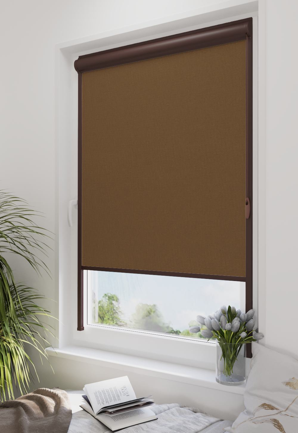 Roleta w kasecie LORD Tkanina Blackout 301 Brąz gładki – kaseta brązowy