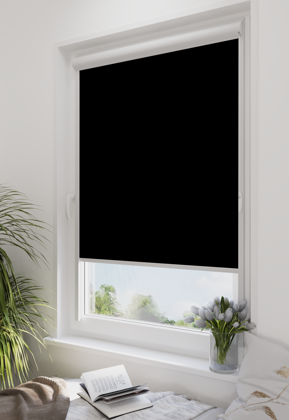Roleta w kasecie LORD Tkanina Blackout 305 Czarny gładki – kaseta biały