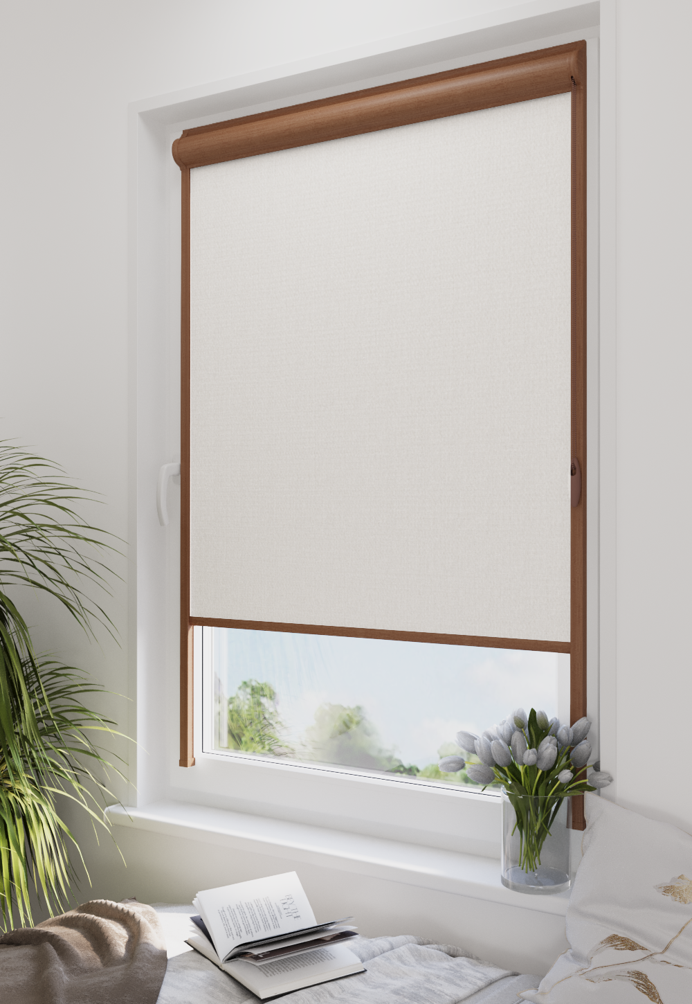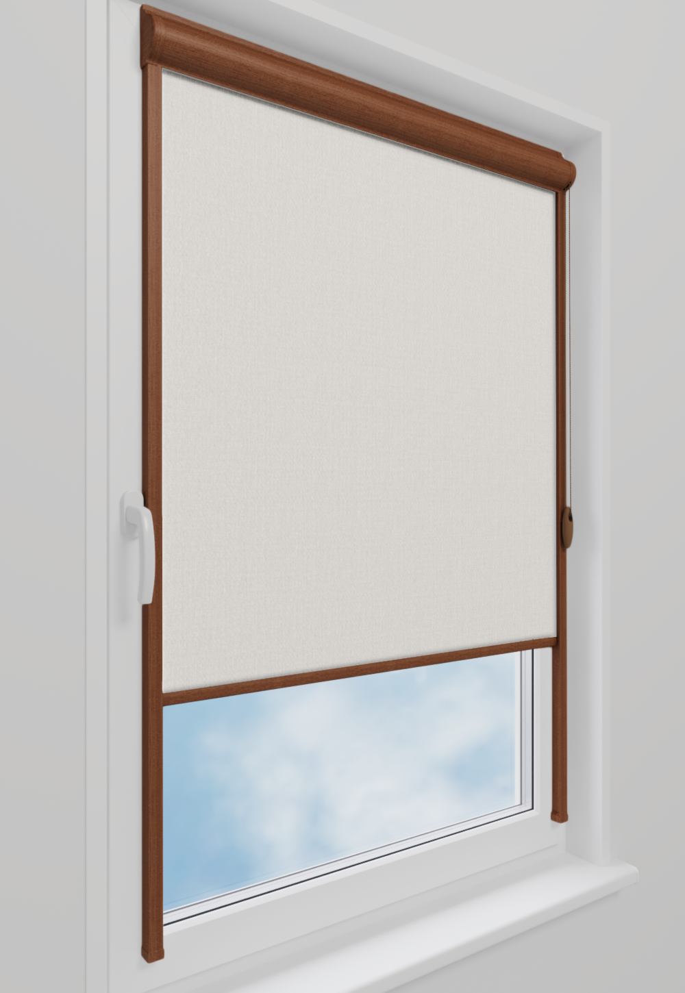 Roleta w kasecie LORD Tkanina Diego 0002 Biel Perłowa – kaseta złoty dąb