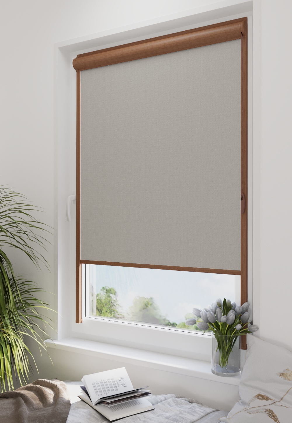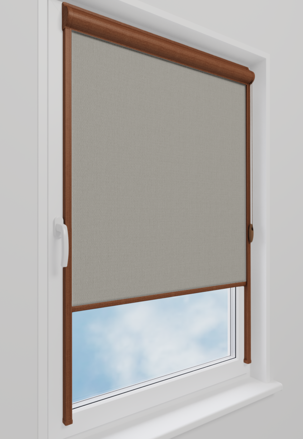 Roleta w kasecie LORD Tkanina Diego 522 Kamienna Szarość – kaseta złoty dąb