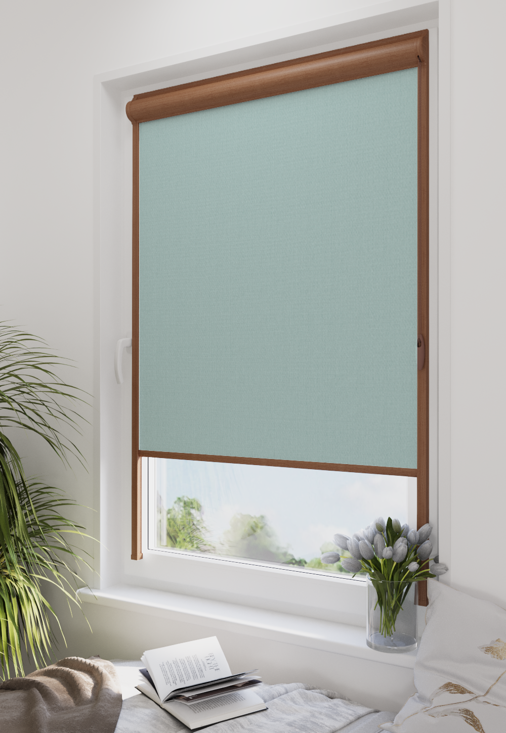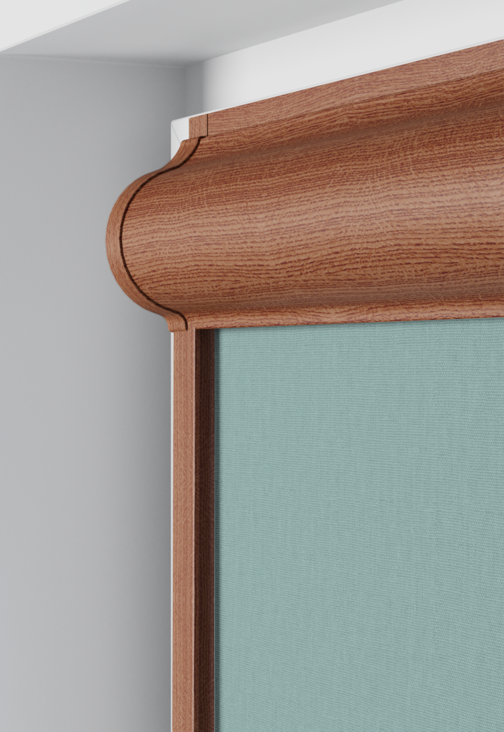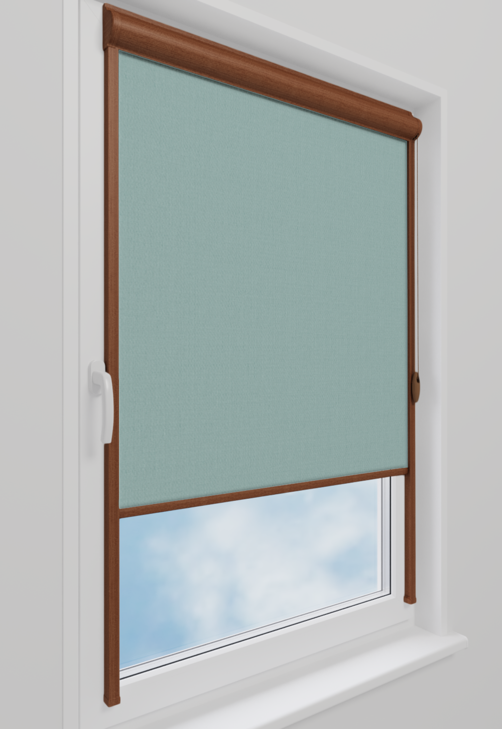 Roleta w kasecie LORD Tkanina Diego 5300 Pastelowy Błękit – kaseta złoty dąb