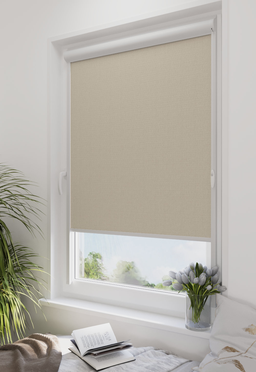 Roleta w kasecie LORD Tkanina Diego 555 Piaskowy Beż – kaseta biały