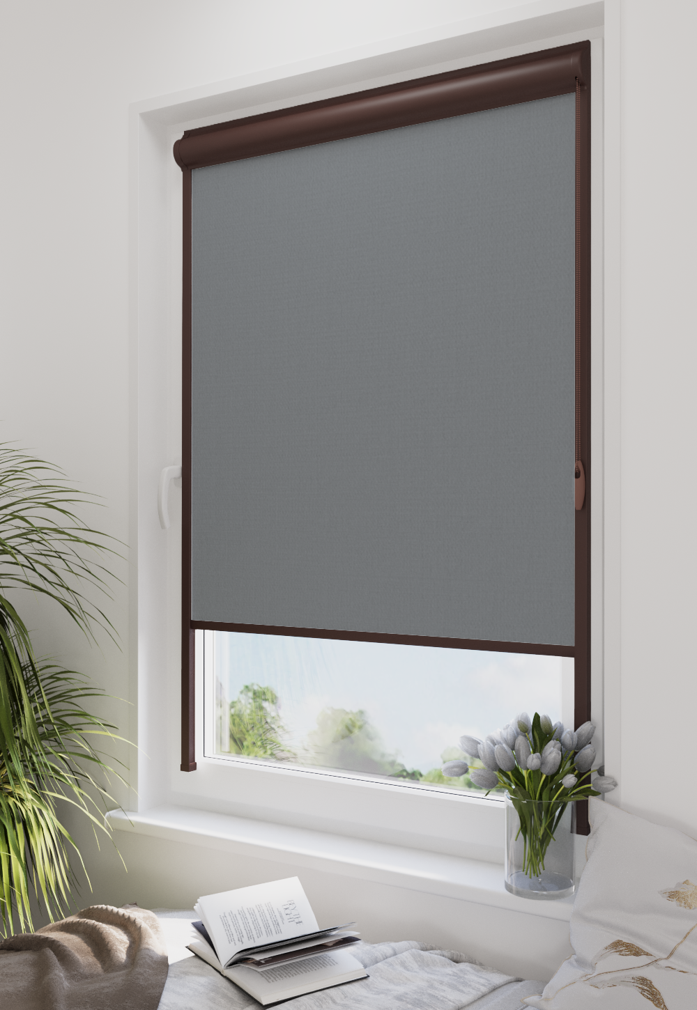 Roleta w kasecie LORD Tkanina Diego 669 Stalowy Szary – kaseta brązowy