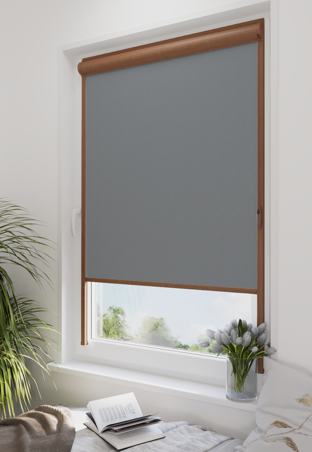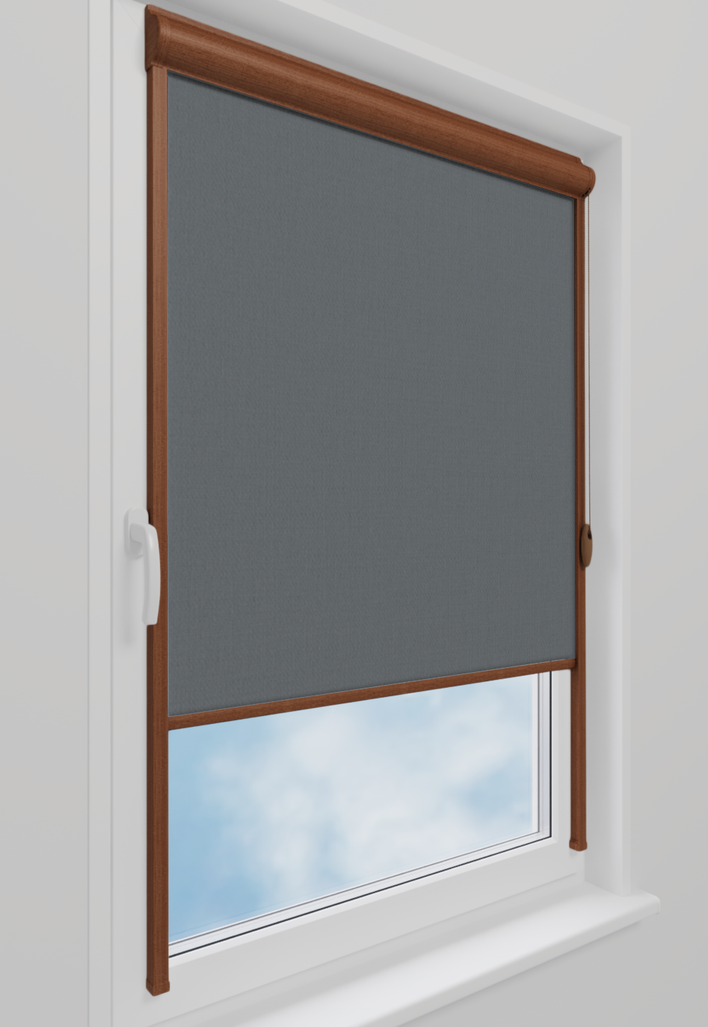 Roleta w kasecie LORD Tkanina Diego 669 Stalowy Szary – kaseta złoty dąb