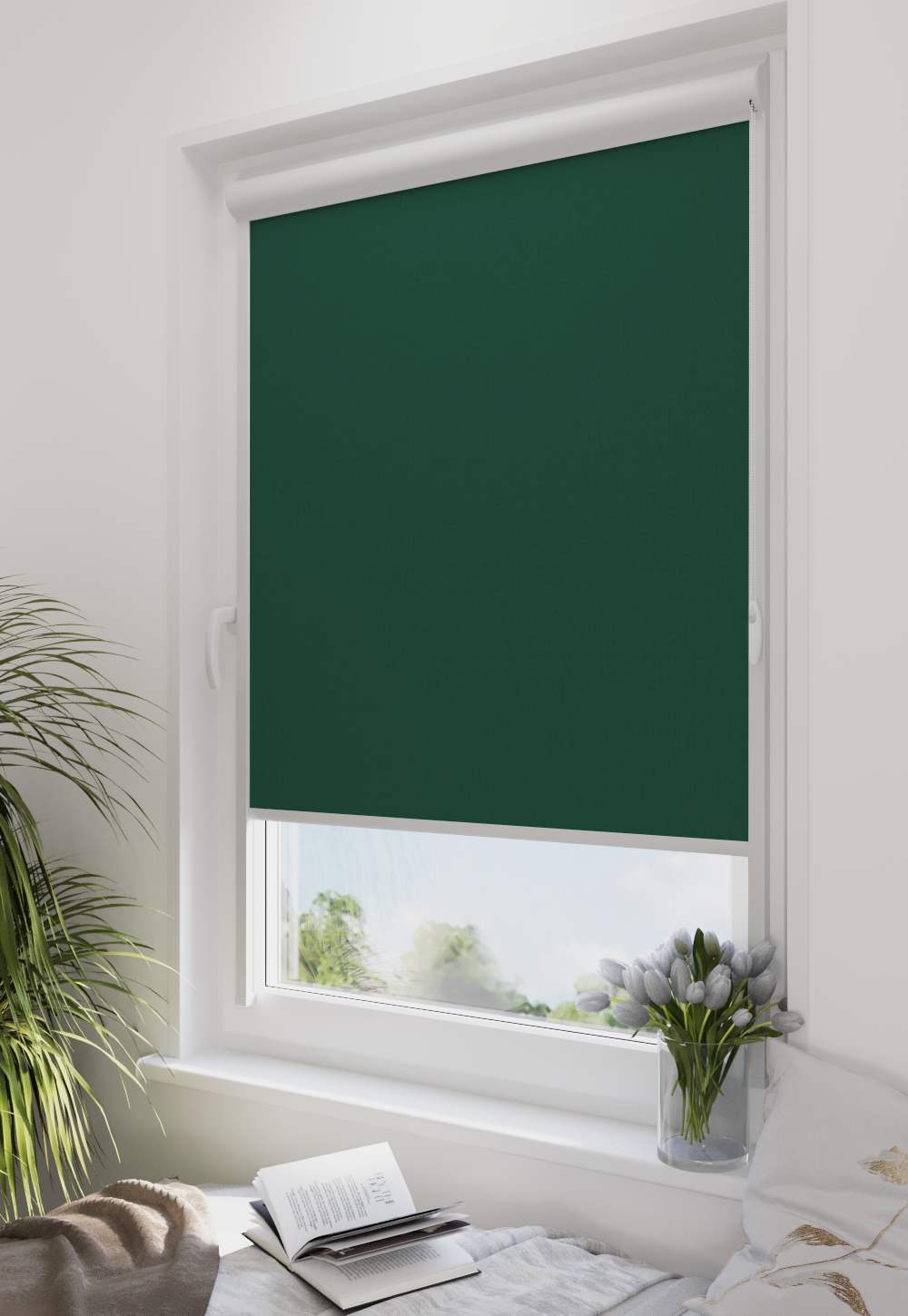 Roleta w kasecie LORD Tkanina Diego 674 Butelkowa Zieleń – kaseta biały
