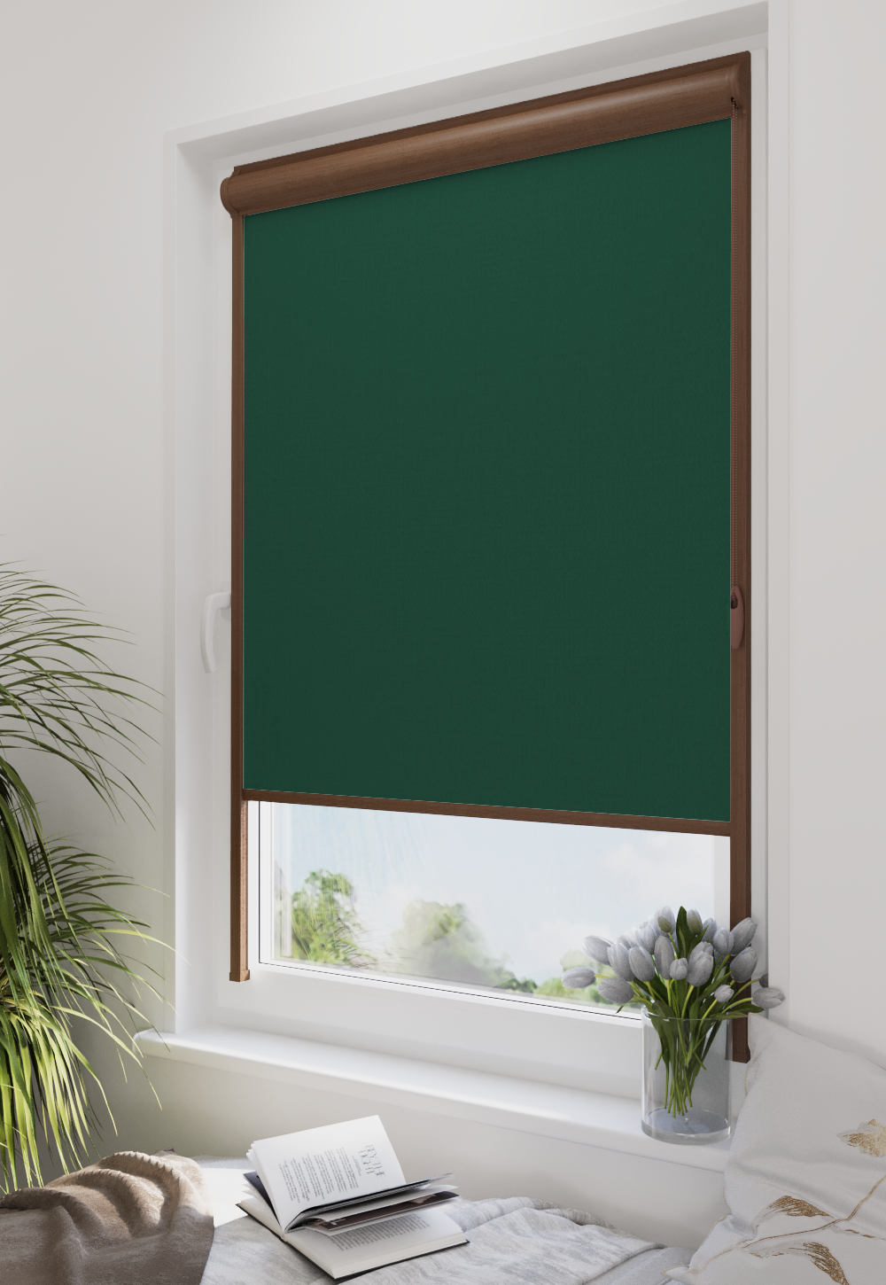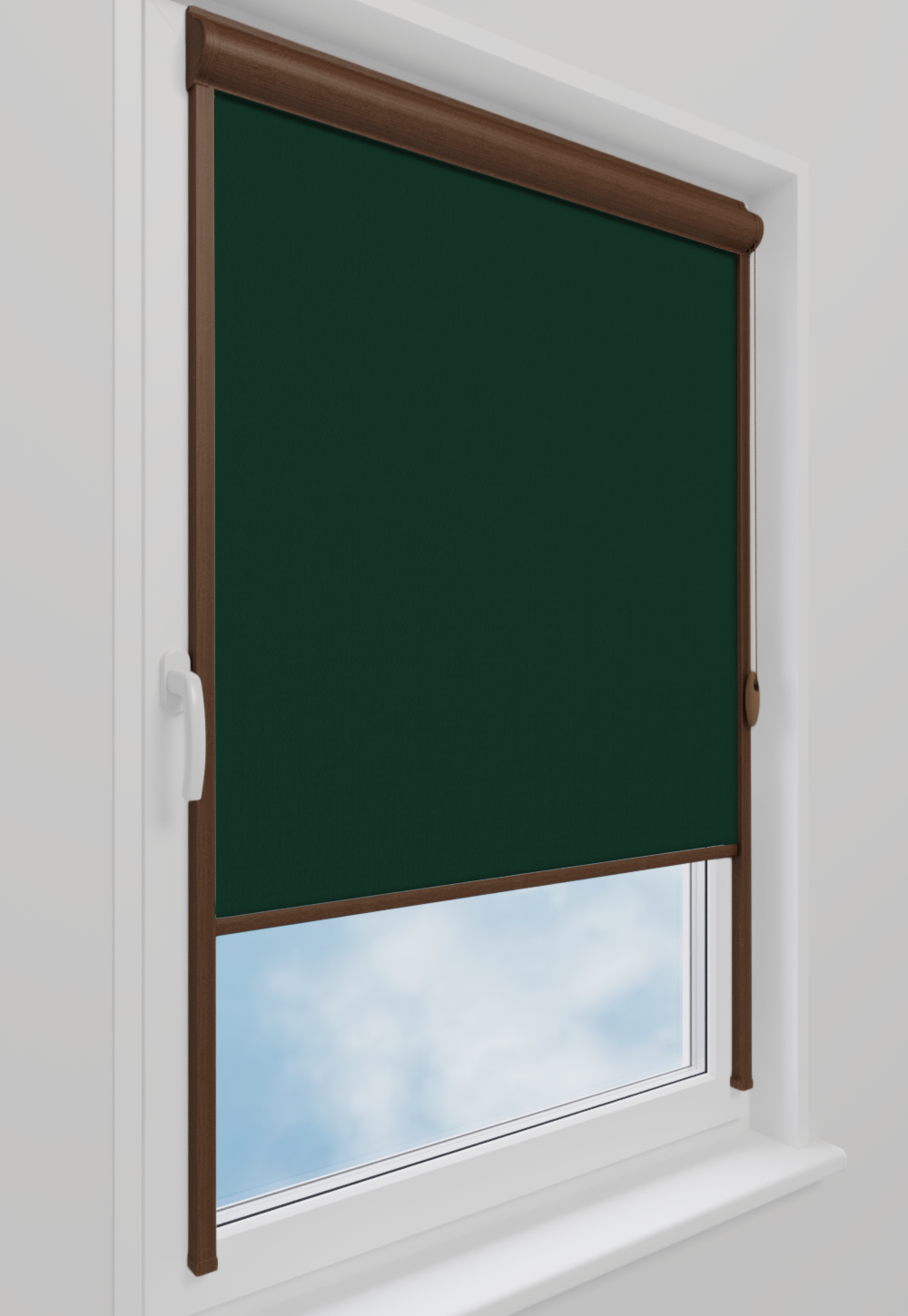 Roleta w kasecie LORD Tkanina Diego 674 Butelkowa Zieleń – kaseta orzech