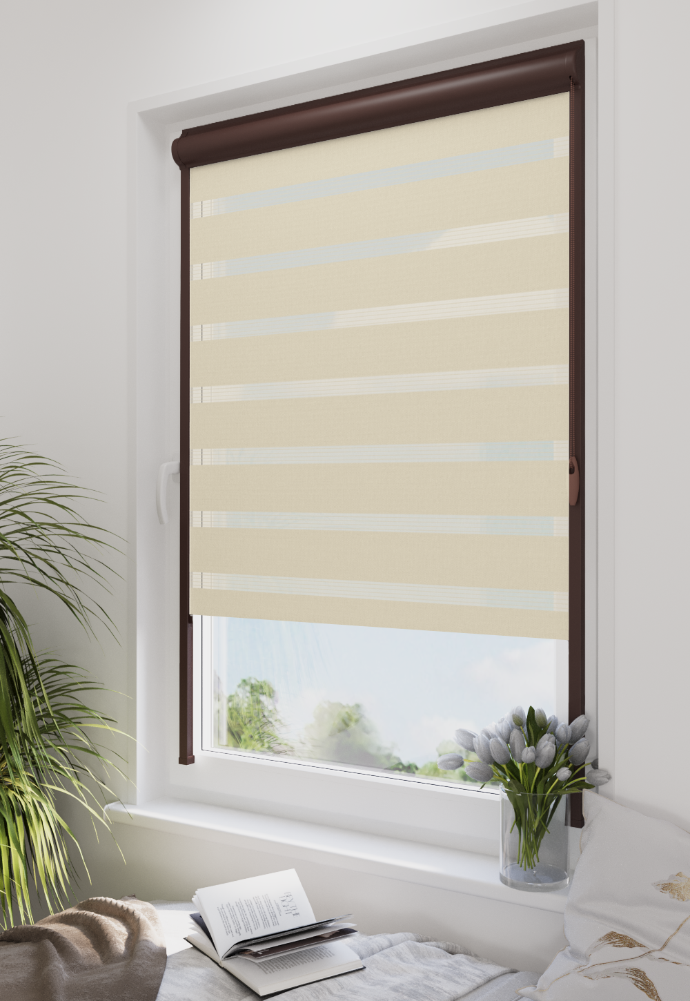 Roleta w kasecie LORD Tkanina Dzień Noc BH-05 Kremowy Beż - kaseta brąz