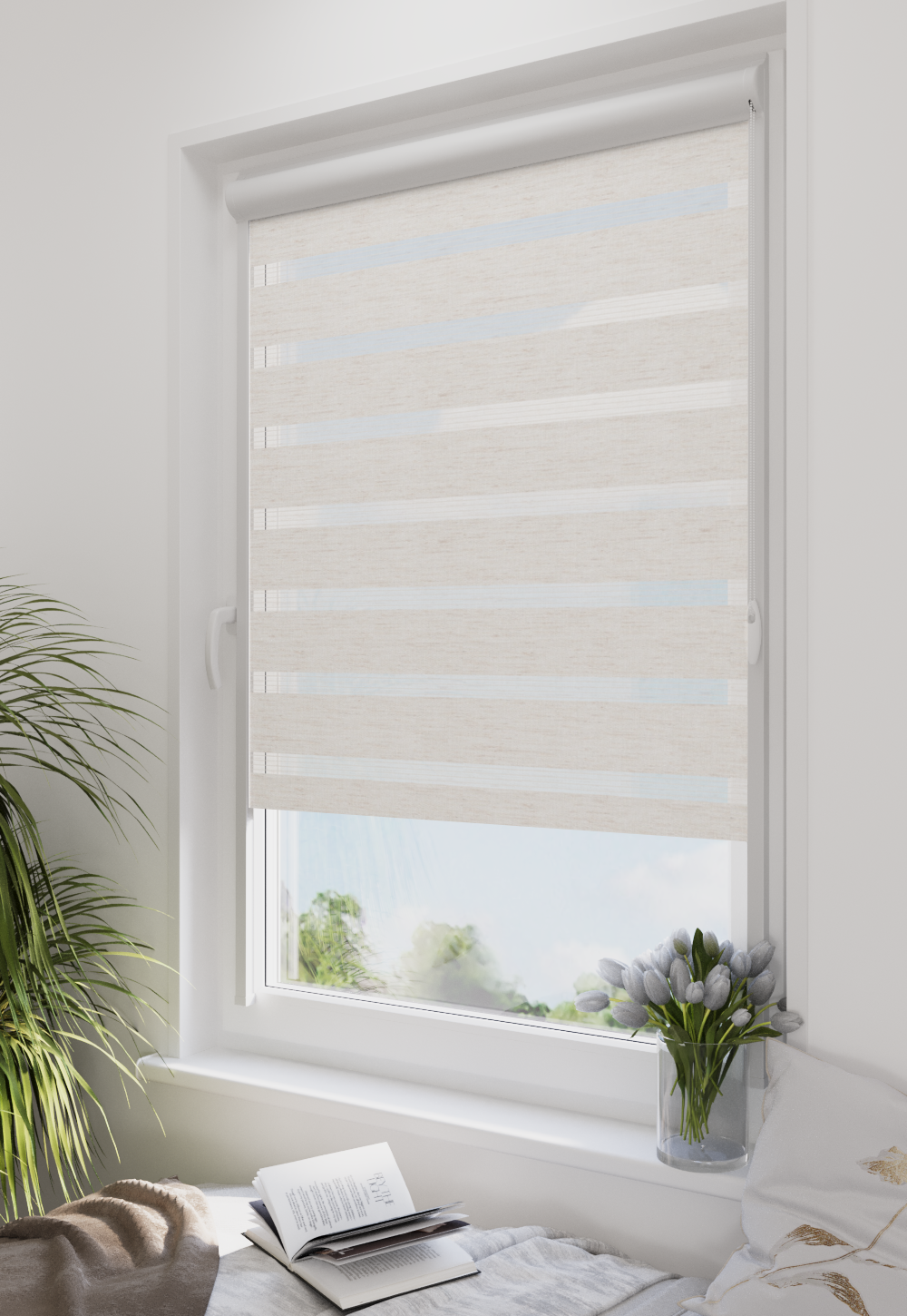 Roleta w kasecie LORD Tkanina Dzień Noc BH-08 Natural - kaseta biała