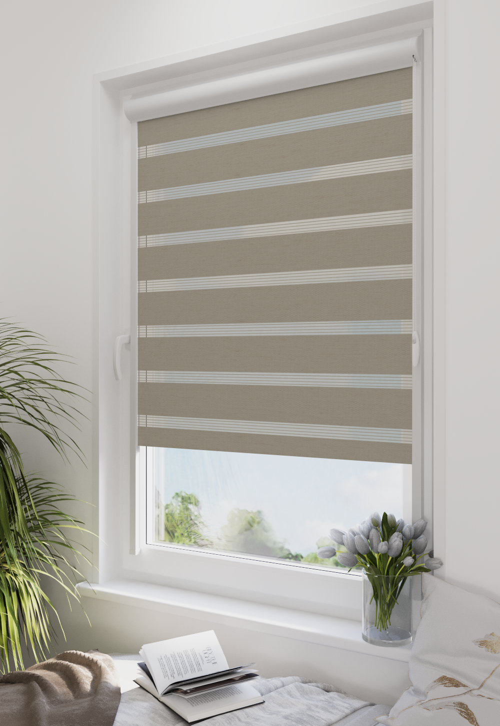 Roleta w kasecie LORD Tkanina Dzień Noc BH-1405 Szary Beż - kaseta biała