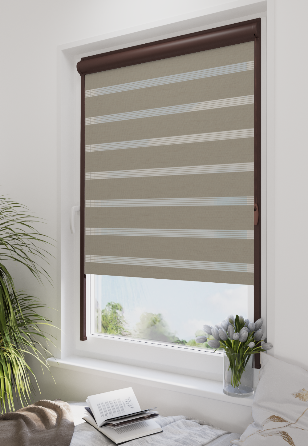Roleta w kasecie LORD Tkanina Dzień Noc BH-1405 Szary Beż - kaseta brąz