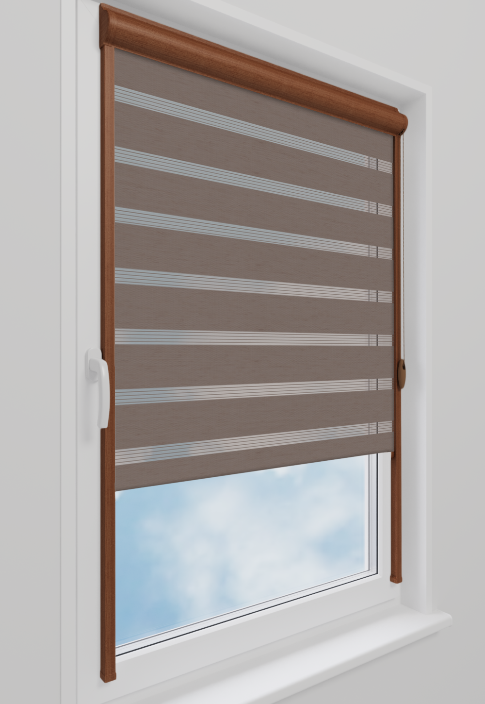 Roleta w kasecie LORD Tkanina Dzień Noc BH-1406 Ciemny Szary - kaseta złoty dąb