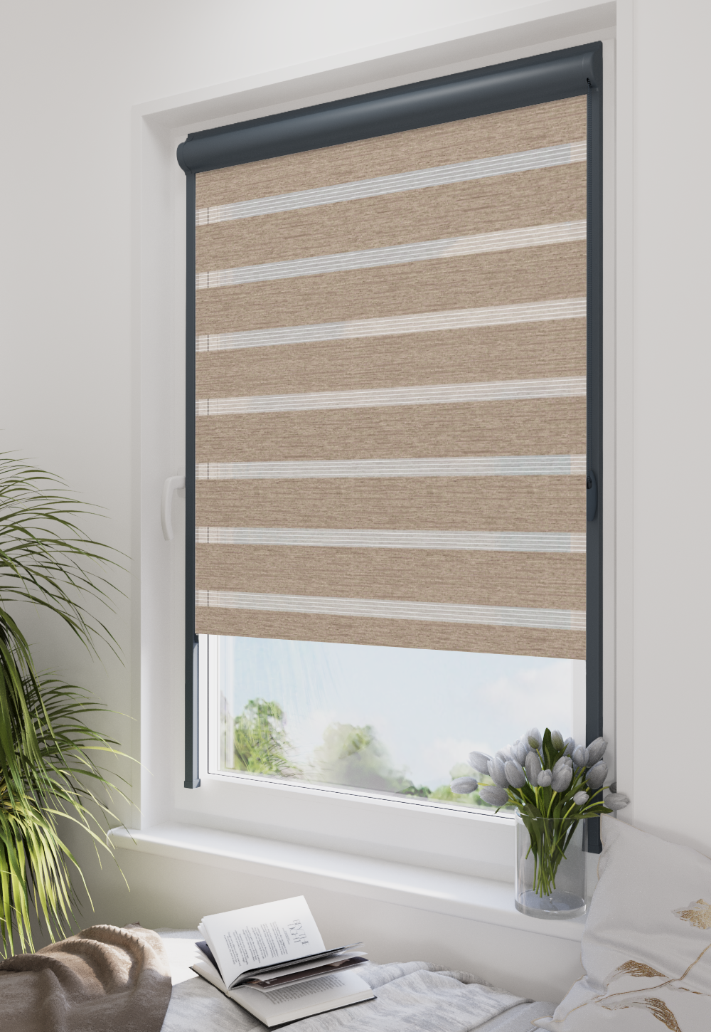 Roleta w kasecie LORD Tkanina Dzień Noc BH-3004 Brązowy Melanż - kaseta antracyt