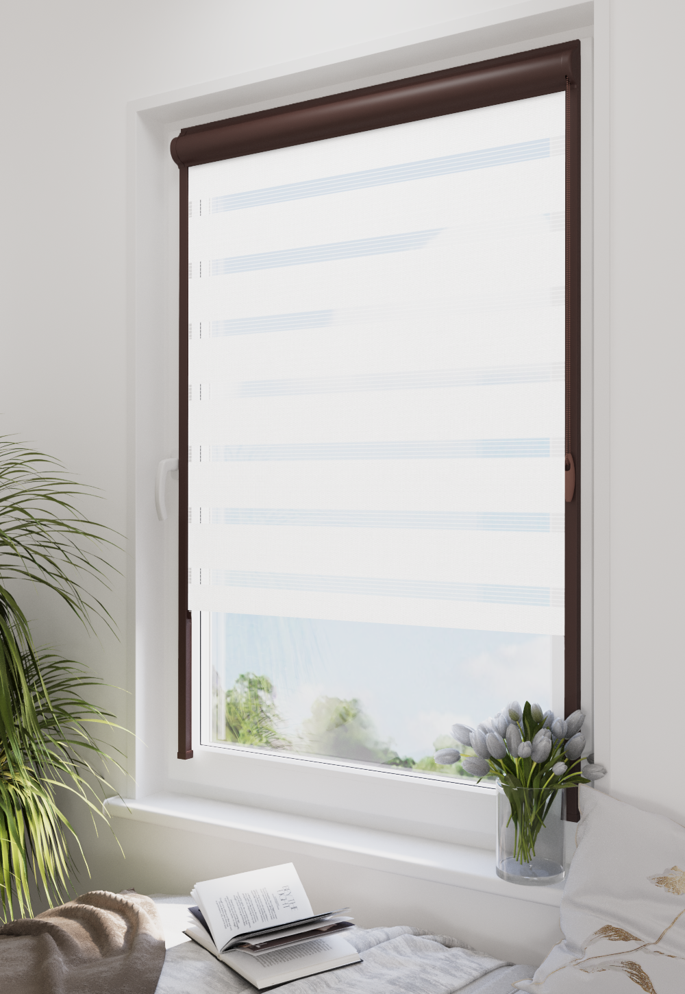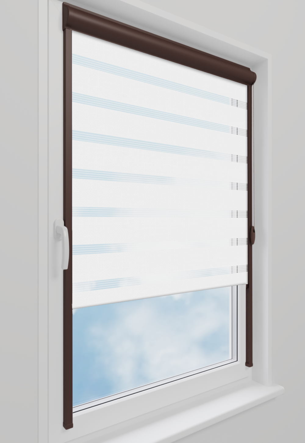 Roleta w kasecie LORD Tkanina Dzień Noc BH-3800 Biała - kaseta brąz