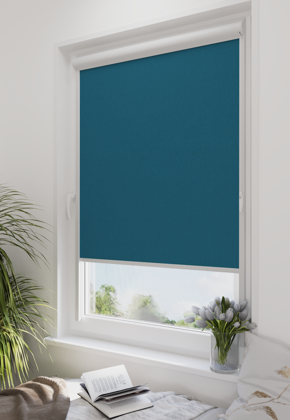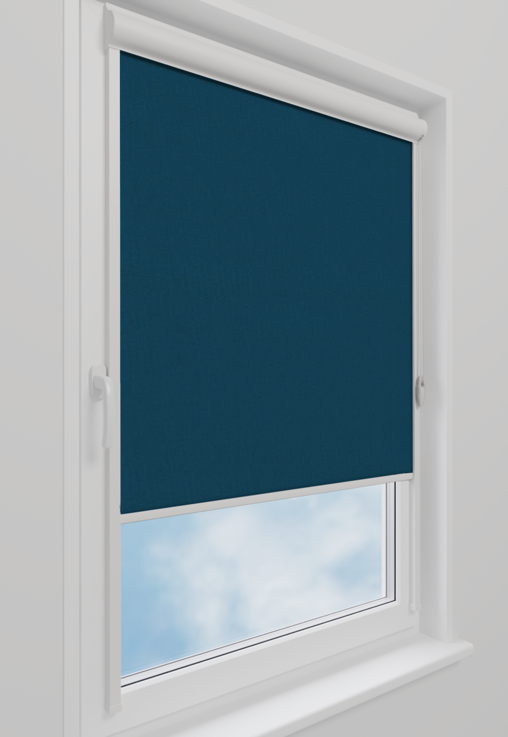Roleta w kasecie LORD Tkanina Blackout 304 Niebieski gładki – kaseta biały